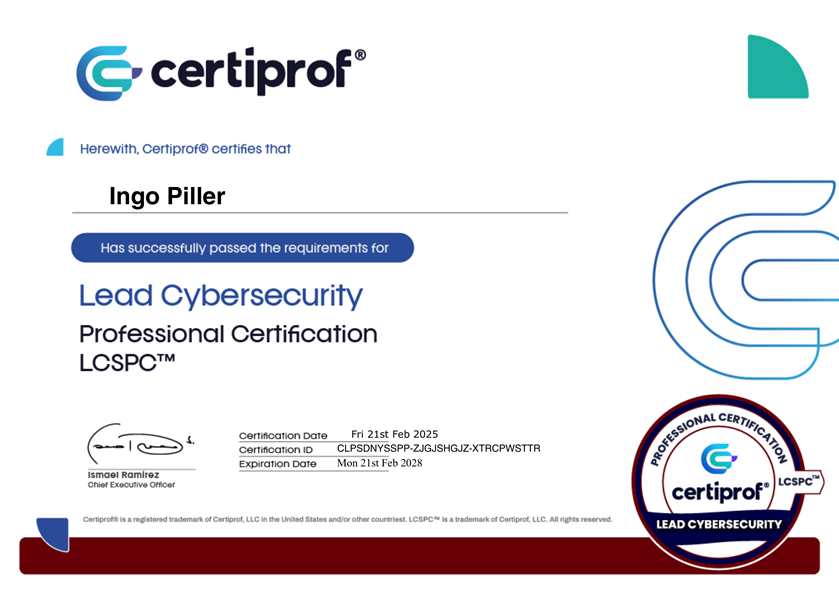 Darüber hinaus ist er mit den Praktiken und Standards im Bereich der IT-Sicherheit, wie dem deutschen IT-Grundschutz, einer umfassenden Reihe von Richtlinien für die Informationssicherheit in Deutschland, vertraut. Ingo ist auch ein zertifizierter BSI IT-Grundschutz-Praktiker, was bedeutet, dass er das Fachwissen hat, um Organisationen zu helfen, effektive Sicherheitsmaßnahmen zu implementieren und die gesetzlichen Anforderungen zu erfüllen.
