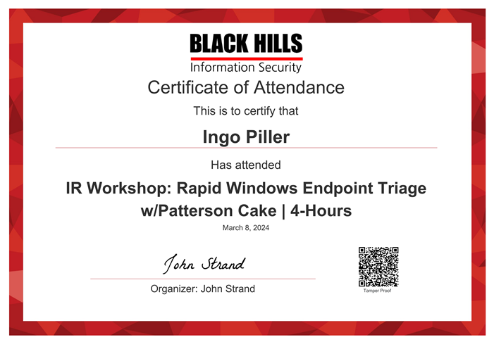 Neben seiner Arbeit im Bereich Incident Response verfügt er über umfassende Kenntnisse im Bereich der Cybersicherheit im Allgemeinen. Eines von Ingos Spezialgebieten neben Incident Response sind Penetrationstests, bei denen er hilft, Schwachstellen zu identifizieren und zu beheben, bevor sie von Angreifern ausgenutzt werden können.